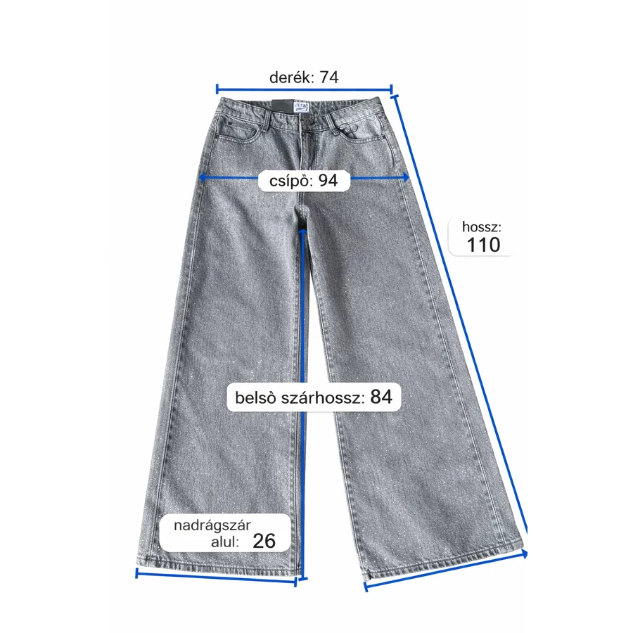 A magas derekú, palazzo (széles szárú) szabás kényelmes viseletet biztosít, miközben optikailag nyújtja az alakot. A nadrág szára bővebb, így modern és trendi megjelenést ad, sneakerrel és magassarkúval is jól kombinálható.