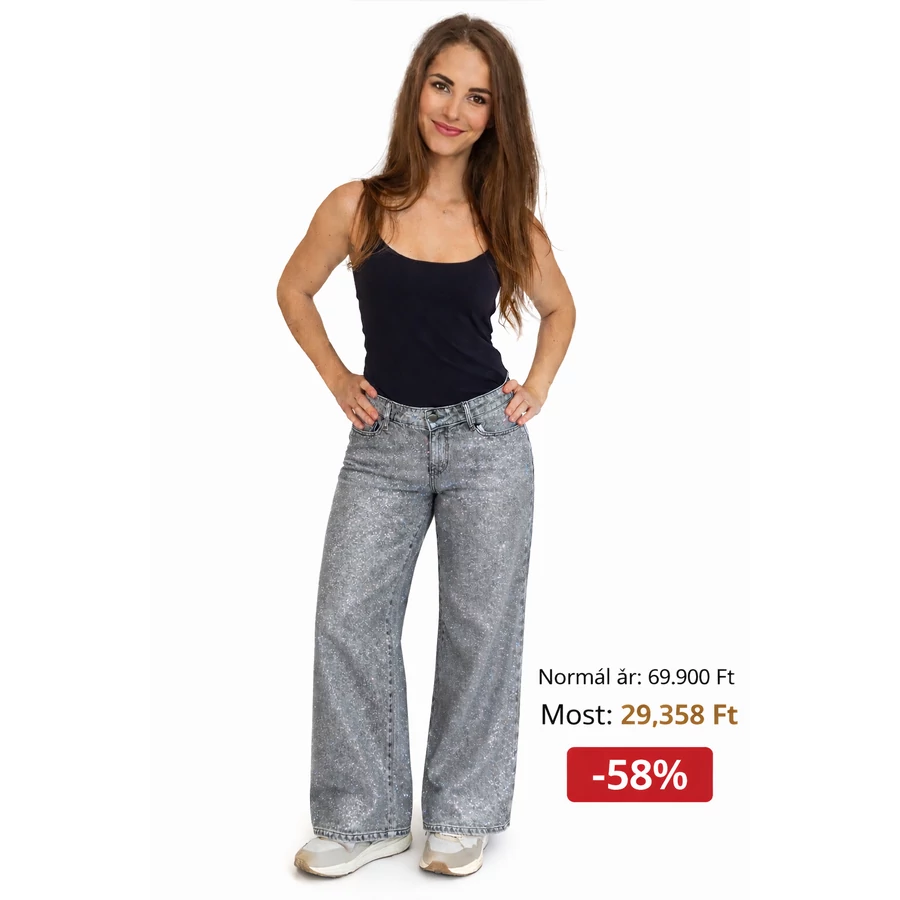 Guess csillogó szürke wide leg farmer - W27 - L34 - magas derekú, palazzo fazon