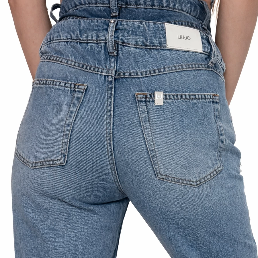 Igazi alakformáló darab a Liu Jo kollekciójából ez a világos kék farmer, amely egyszerre trendi és nőies választás.