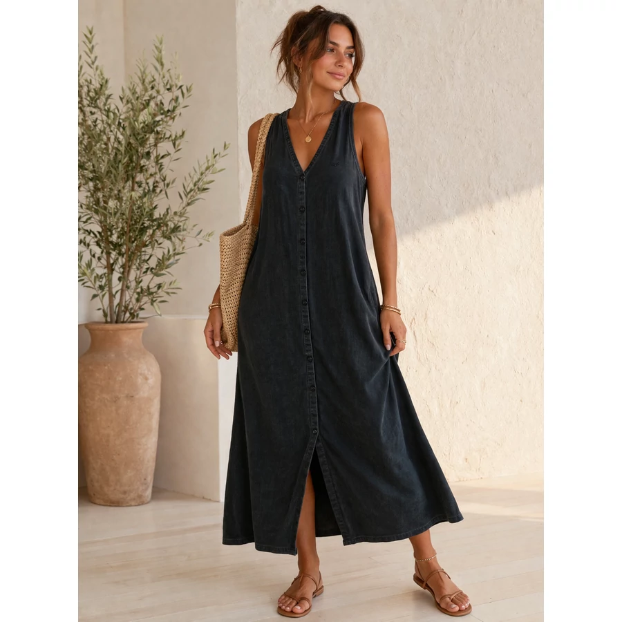 Superdry Fekete Gombos Maxi Ruha – Laza Nyári Alapdarab